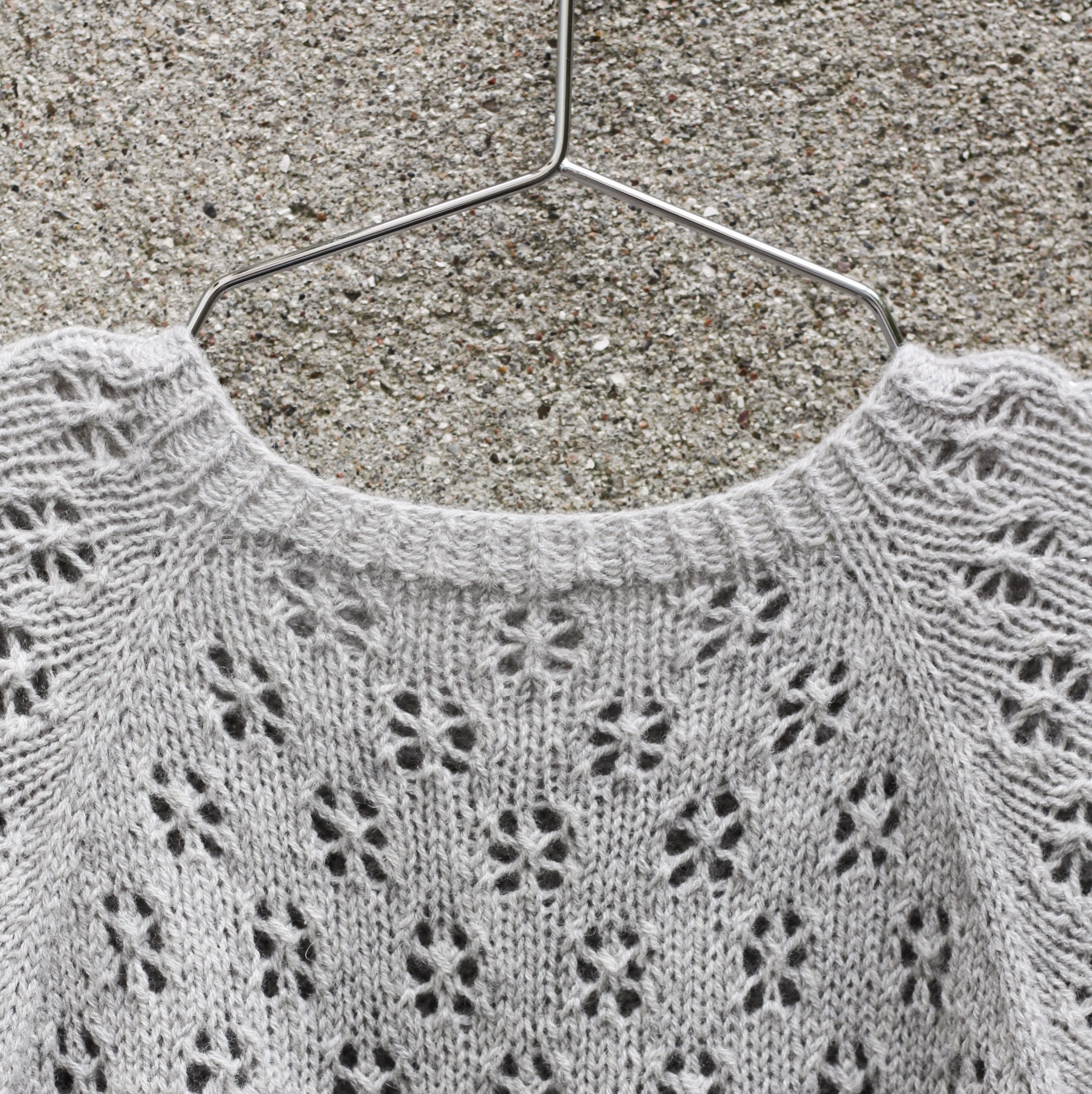 Garn: Knitting for Olive Merino, Cotton Merino oder Pure Silk (250 m [273 yd] / 50 g [1.8 oz]), Fingeringweight Garn, 2 (3) // 4 (5, 6) Knäuel. Das Muster ist aus Merino in der Farbe Pearl Gray .