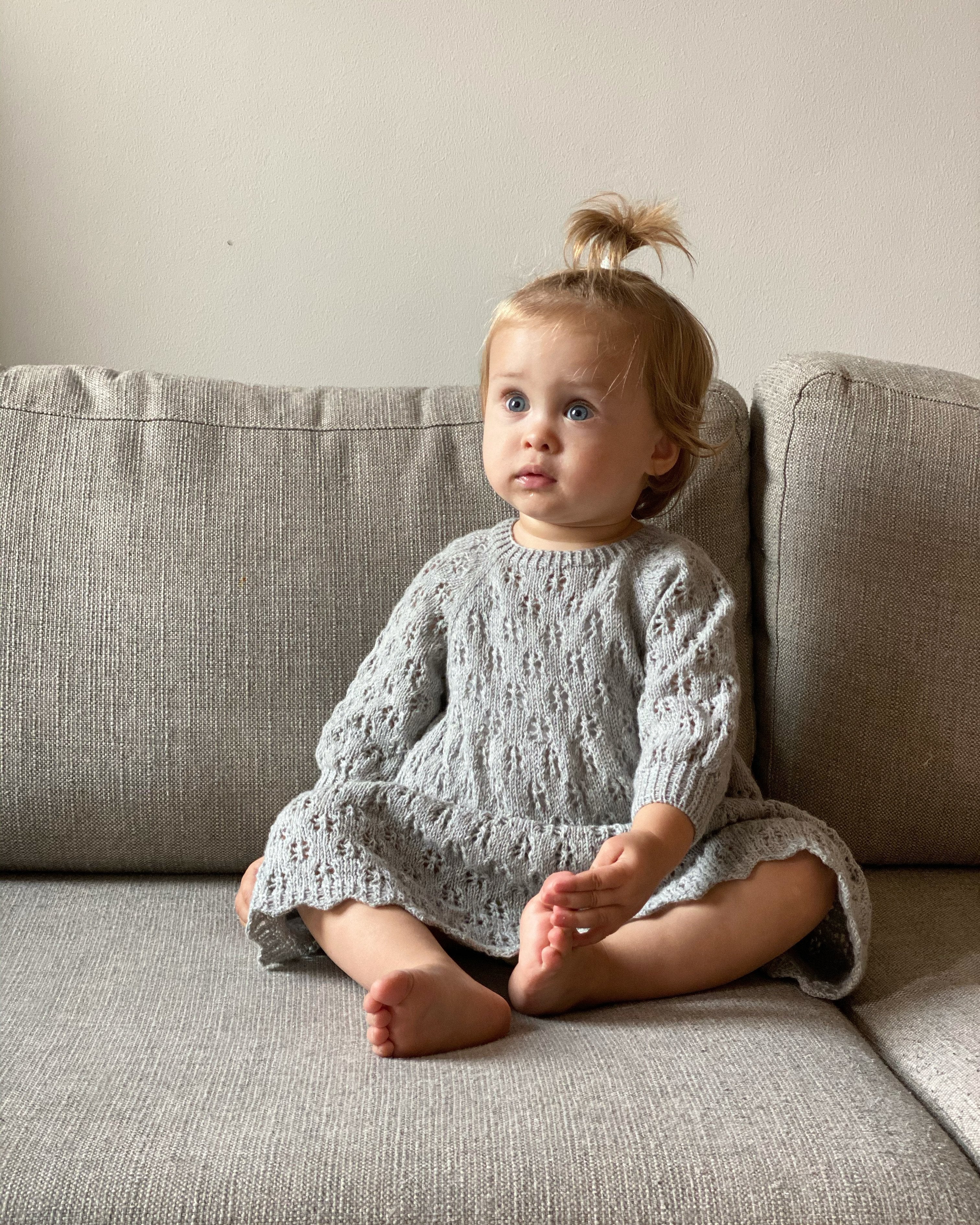 Das Margherita Dress war unser Weihnachtskleid 2020 und hat seinen Namen von dem charakteristischen Lochmuster, das zumindest für das fünfjährige Mädchen in unserem Haus eindeutig an eine Margherita-Pizza erinnerte, während die Anleitung für den Rest von uns eher wie kleine Blumen aussah. Egal, was man sieht, dieses Kleid ist von oben nach unten mit einer Raglan-Konstruktion in einer leicht zu strickenden Anleitung gearbeitet. Die gerippten Kanten bilden einen schönen Kontrast zu dem weiten Rock und der mädchenhaften Anleitung, und das Kleid kann daher leicht nach oben oder unten gekleidet werden und eignet sich für mehrere Anlässe. Die Schlüssellochöffnung im Rücken wird mit einem Knopf geschlossen. Die Ärmel sind für eine 3/4-Länge vorgesehen, können aber durch Wiederholung der Anleitung auch länger gemacht werden. Margherita Dress wird mit 1 Faden aus Merino, Cotton Merino oder Pure Silk gestrickt.