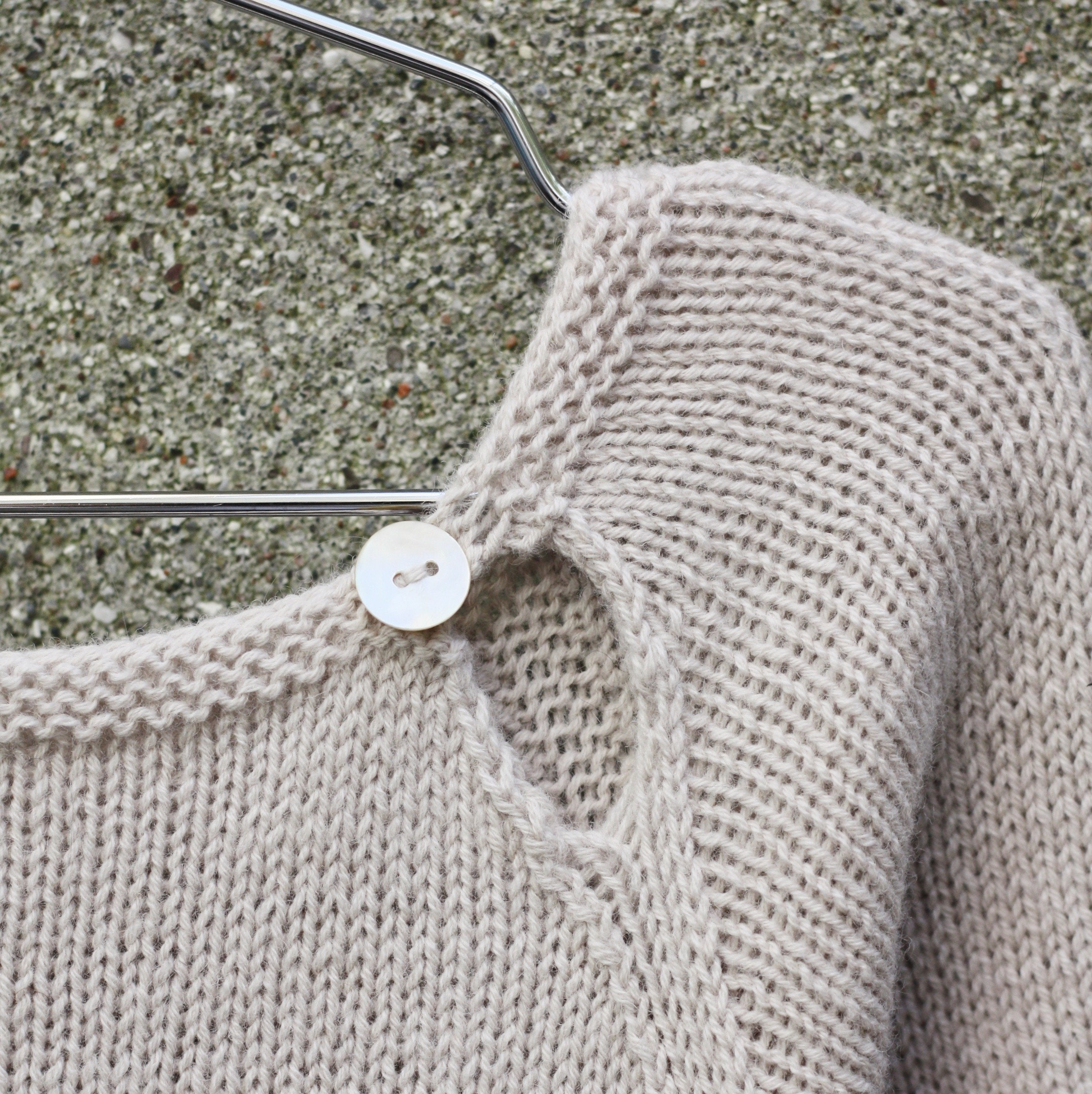 Die Größen 6-9 und 12-18 Monate, sowie 2 Jahre werden mit einem Schlitz an einer Raglannaht beendet.