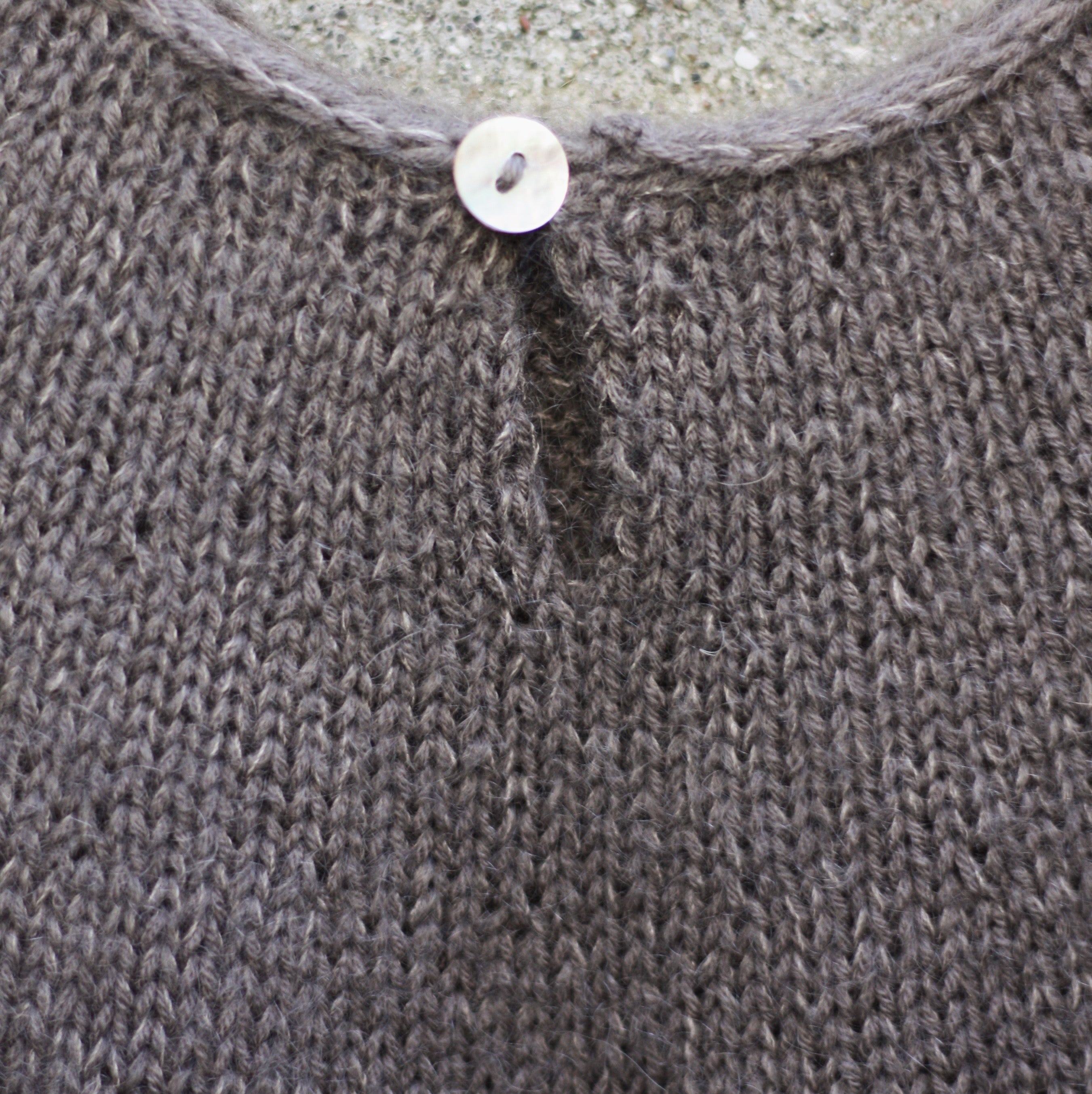 Laine: Soit 1 brin de Knitting for Olive Merino, Pure Silk ou Cotton Merino (250 m [273 yd] / 50 g [1.8 oz]), fil de poids doigté, 2 (2, 2) // 2 (3, 3, 4) pelotes + 1 brin de Knitting for Olive Soft Silk Mohair (225 m [246 yd] / 25 g [0.9 oz]), fil de poids dentelle, 2 (2, 3) // 3 (3, 4, 4) pelotes, ou 2 brins de Knitting for Olive Merino, Pure Silk ou Cotton Merino, 3 (3, 4) // 4 (5, 6, 7) pelotes. L'échantillon est en Mérinos + Soft Silk Mohair dans le coloris Dusty Moose.