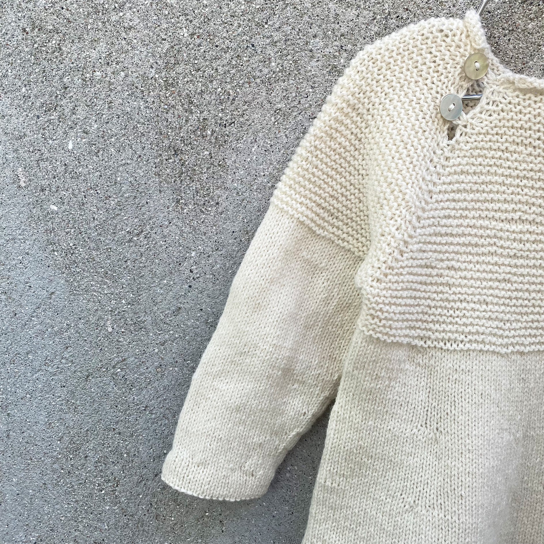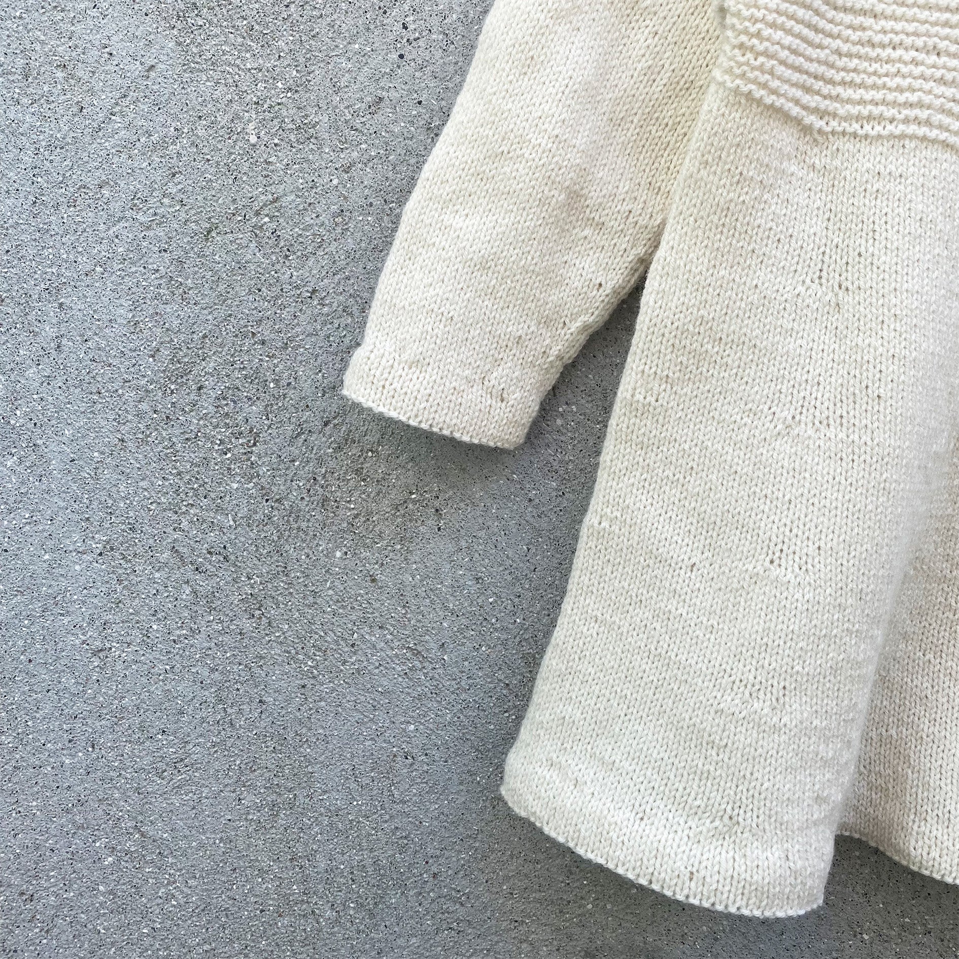 Vous commencez à travailler d'avant en arrière pour créer une petite fente dans le dos tout en façonnant l'encolure avec des rangs courtes. L'empiècement est façonné avec des augmentations raglan jusqu'aux aisselles et la jupe est travaillée en maille stockinette dans le rond et façonnée avec des augmentations. Les manches sont travaillées en rond du haut vers le bas et vous pouvez choisir entre les manches courtes et les manches longues.