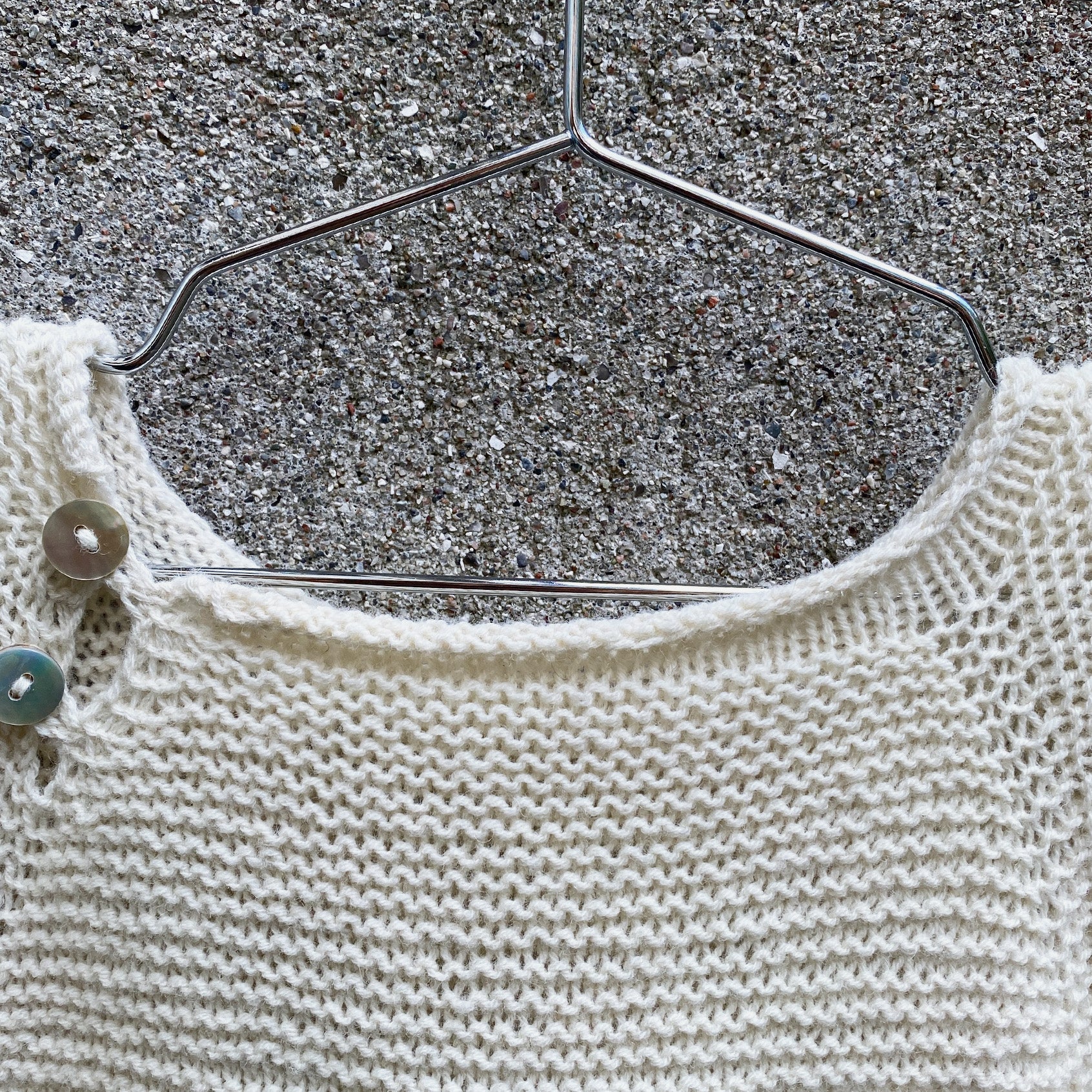 L'échantillon est en mérinos dans le coloris Elderflower.