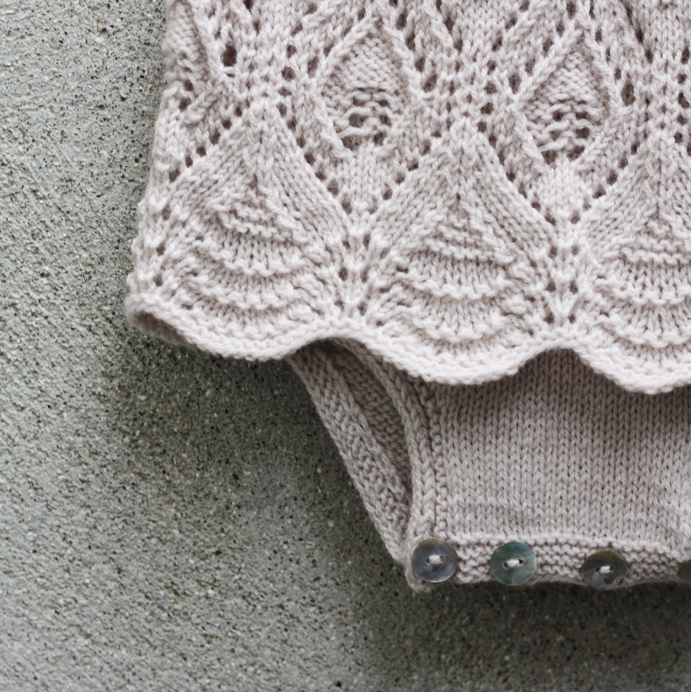 La grenouillère de la photo est tricotée en mérinos, coloris Marzipan.