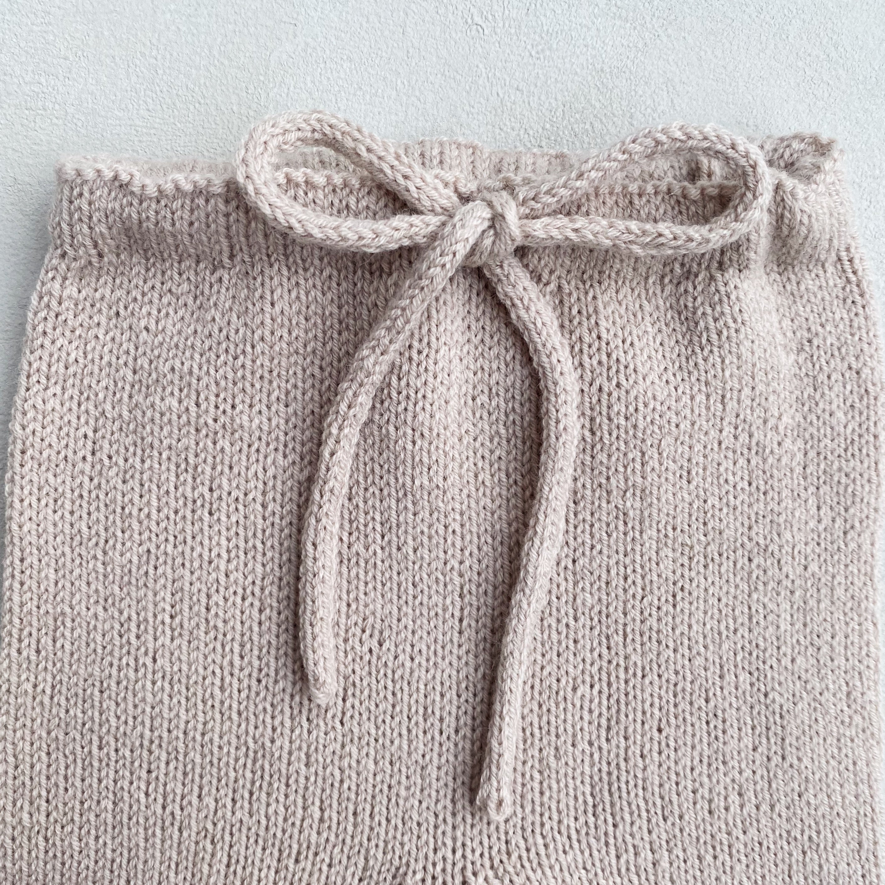 Ces leggings se travaillent en rond, de bas en haut et sans couture.L’arrière est formé à l’aide de rangs raccourcis, et le motif en dentelle donne de l’intérêt au jersey. Laceinture se replie en un ourlet pour cordon I-cord pour les petites tailles, ou pour un élastique pour les plusgrandes. Les leggings sont courts, ce qui garantit que le motif en dentelle soit visible lorsque l'enfant portedes bottines. Les instructions indiquent comment ajouter de la longueur aux mesures finies si nécessaire.Le motif de dentelle est uniquement représenté par grille.