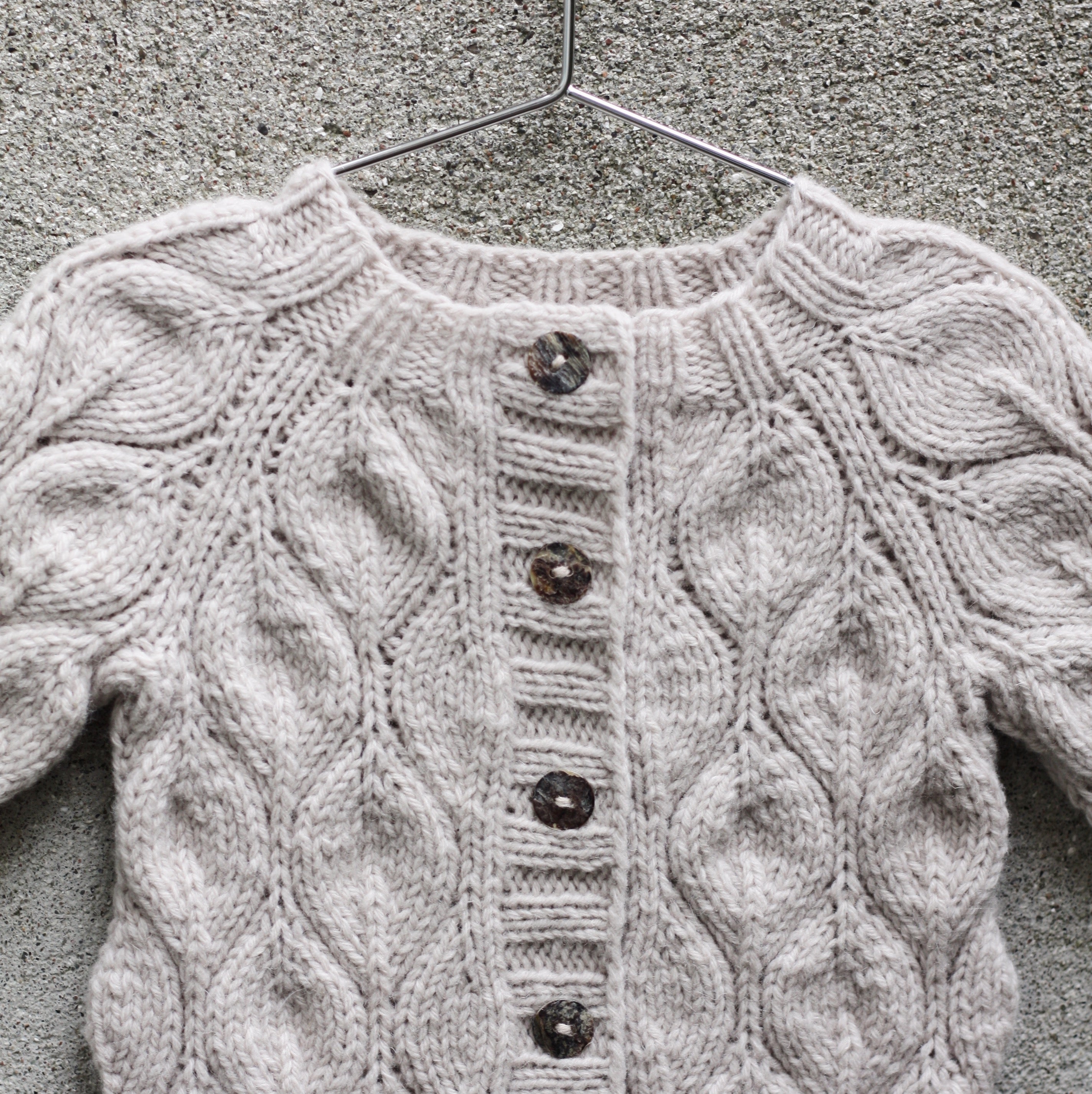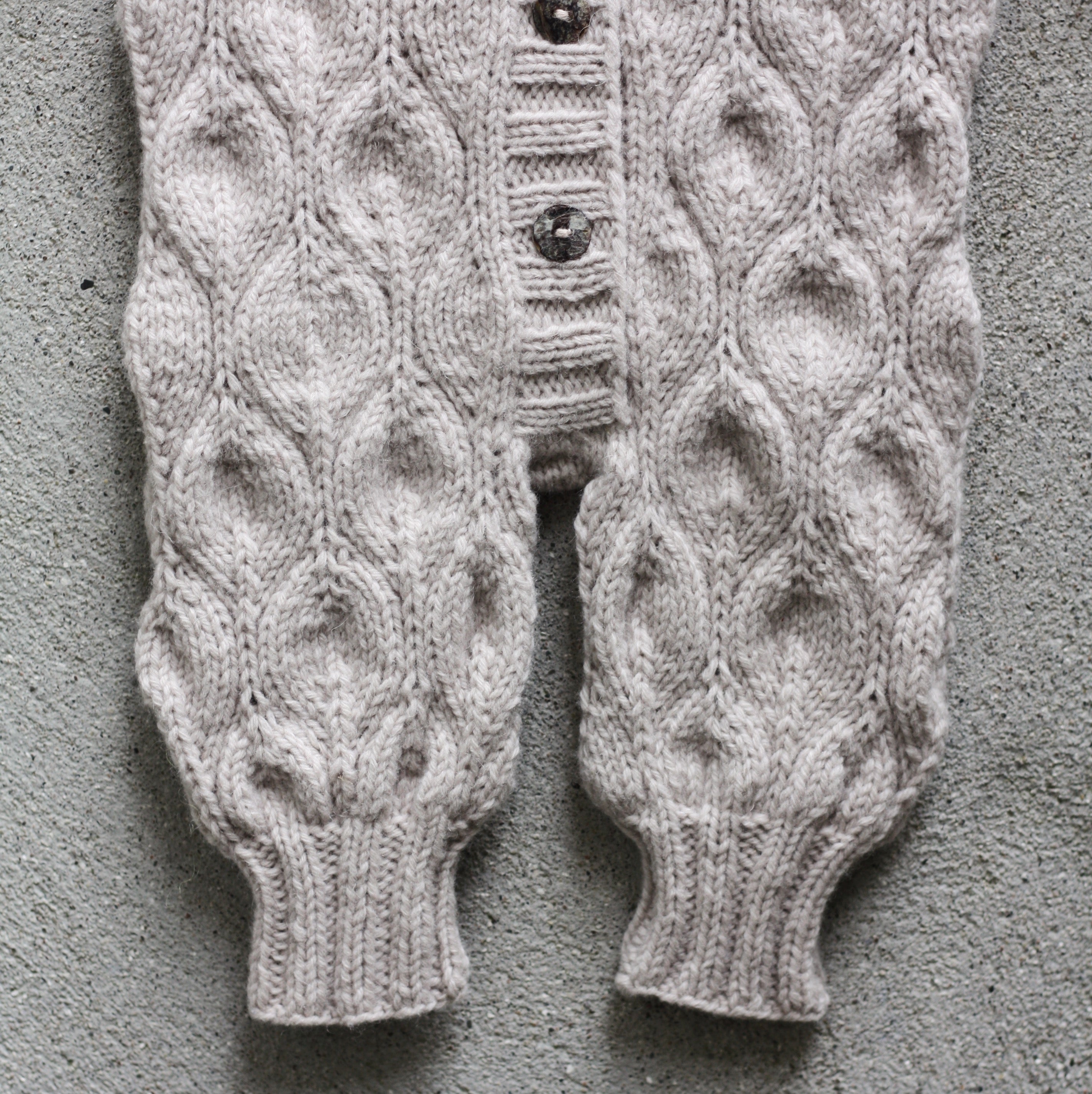 Le modèle présenté est tricoté en Heavy Merino – colori Marcipan.