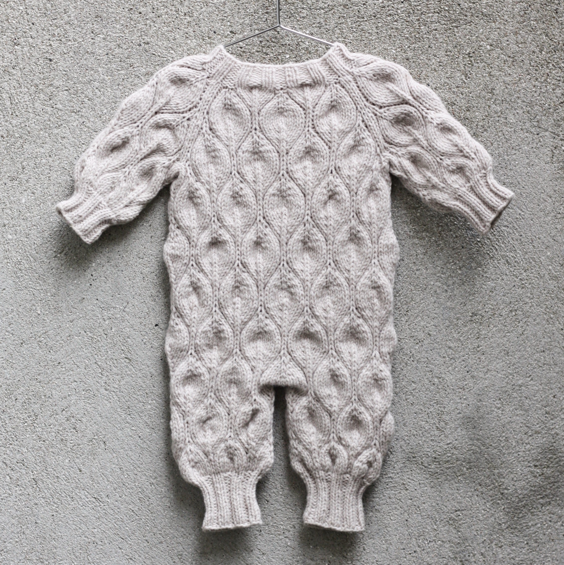 La combinaison Olive est travaillée sans couture, de haut en bas. L'empiècement et le corps se tricotent en