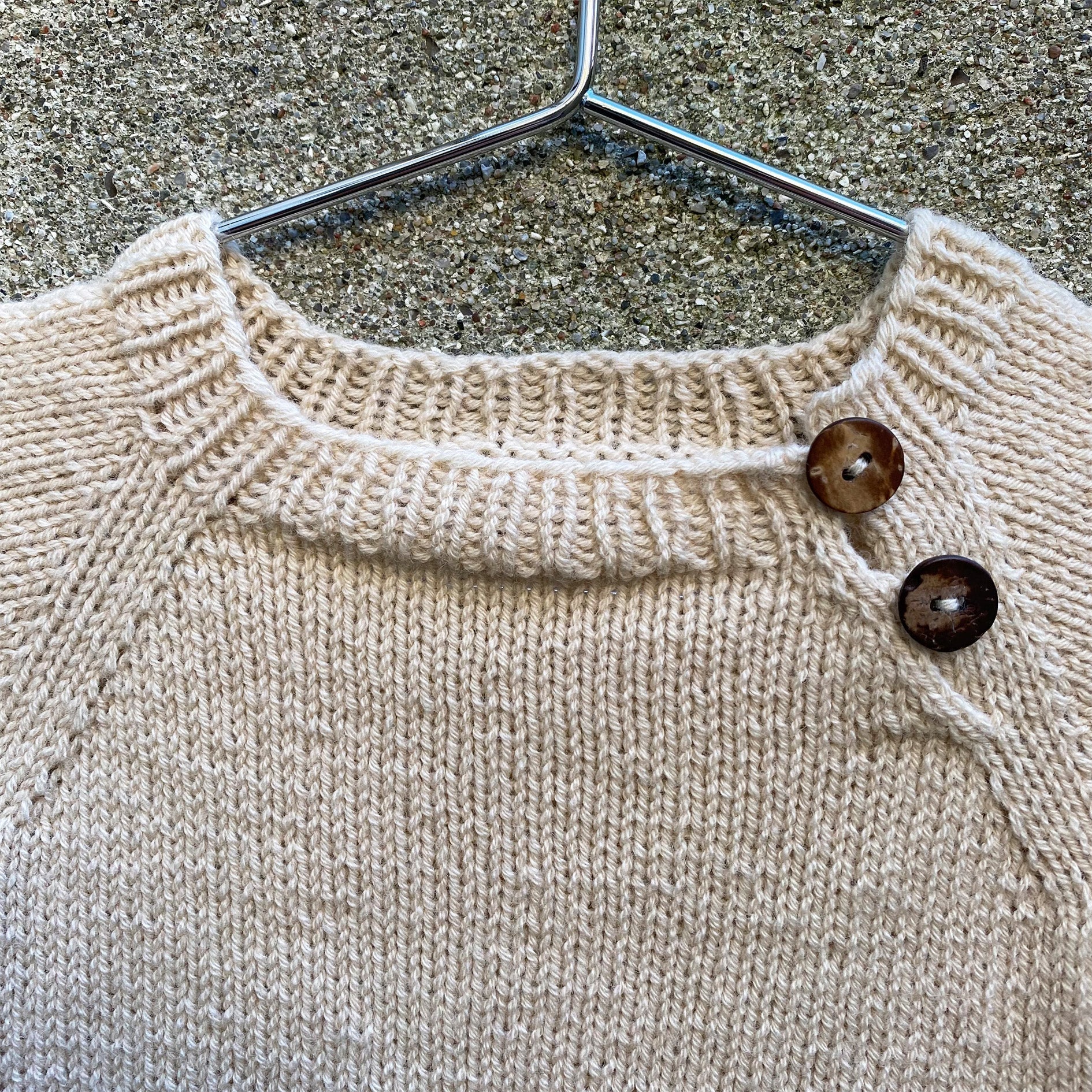Olive's Onesie est une simple combinaison de bébé tout-en-un avec des pieds. La combinaison est travaillée du haut vers le bas en utilisant un fil de mérinos ou de coton mérinos. Une ouverture à l'intérieur des jambes et une petite ouverture sur le devant de l'empiècement raglan, toutes deux fermées par des boutons, facilitent le changement de couche et l'habillage. Le dos est façonné avec un short allemand rangs.