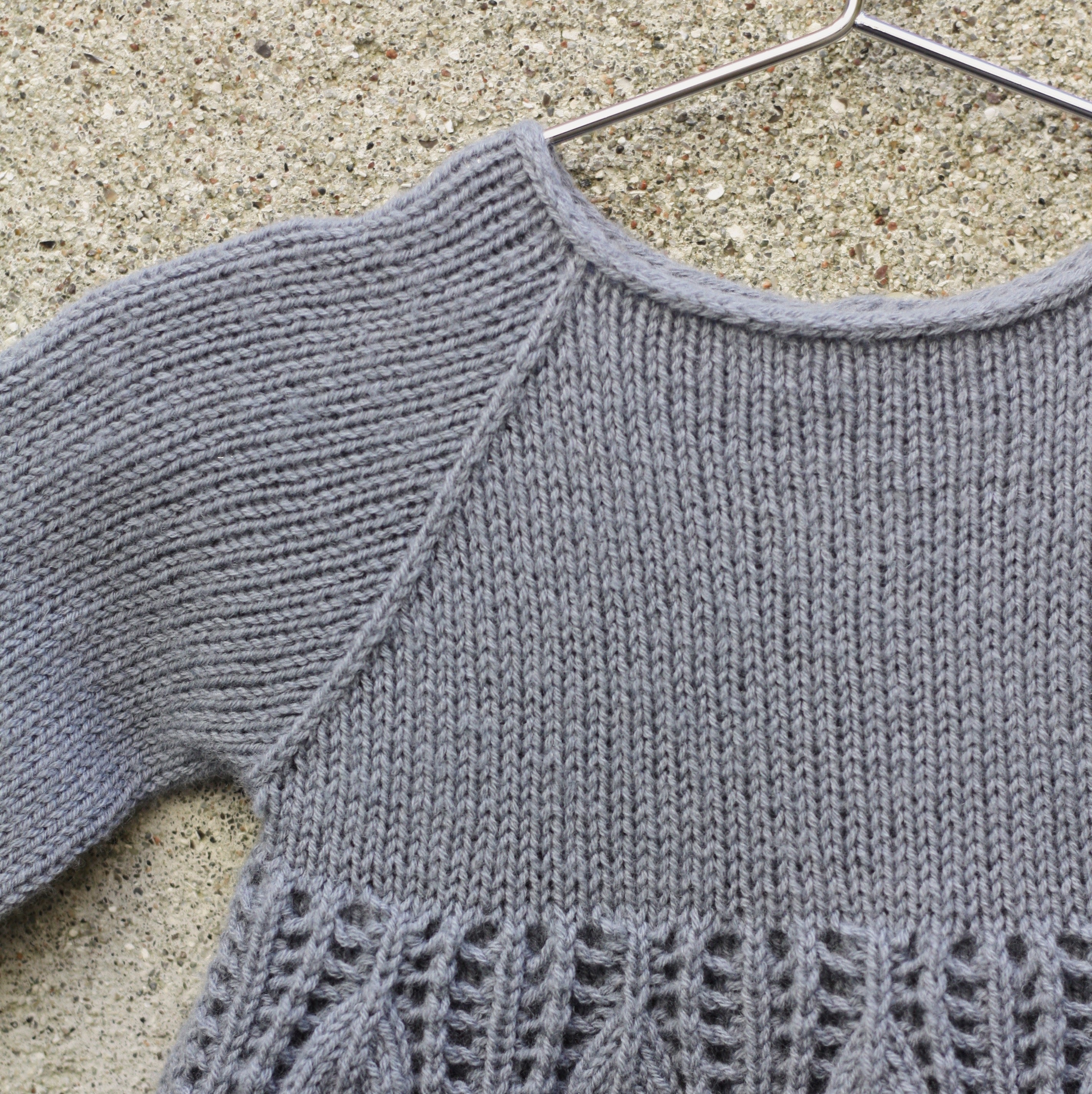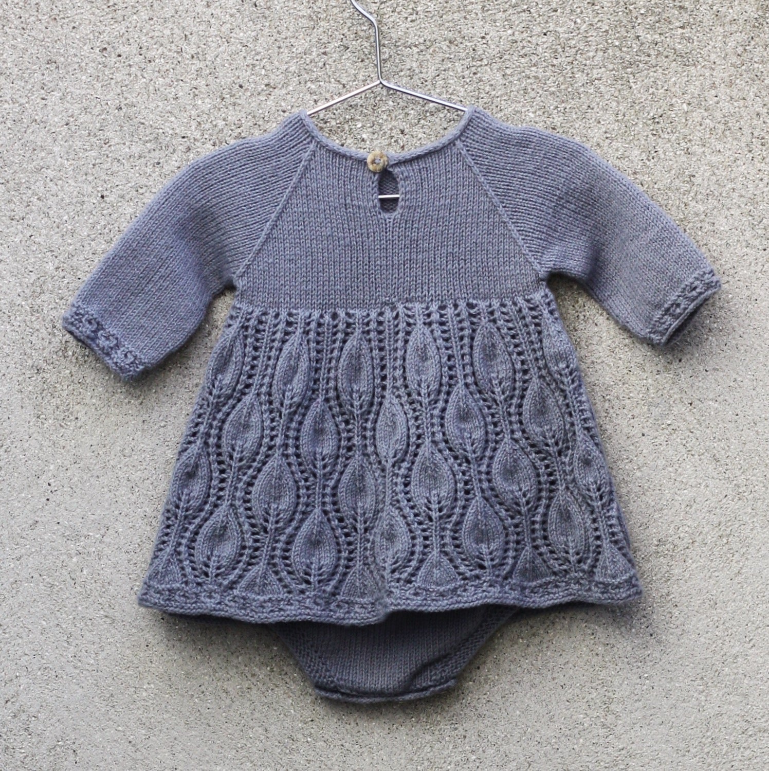 La robe illustrée ci-dessus a été tricotée avec le Merino de Knitting for Olive- Dusty Dove Blue.