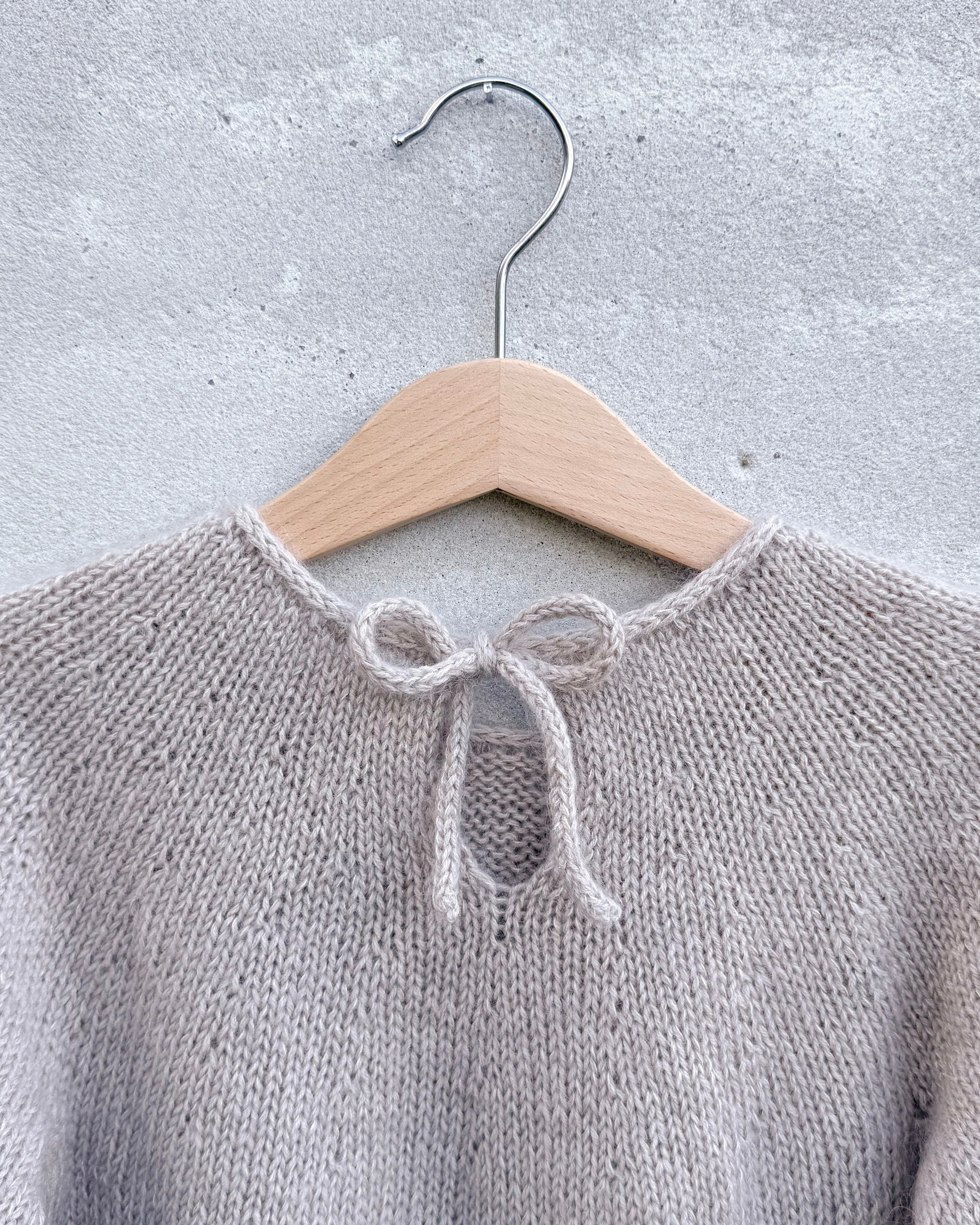 Vous commencez par l'encolure et les liens i-cord avant de poursuivre avec l'empiècement en travaillant d'abord d'avant en arrière pour créer l'ouverture en forme de trou de serrure dans le dos. Ensuite, vous continuez en rond. L'ouverture de l'encolure et le corps sont façonnés avec des rangs courts allemands. Le corps est fini avec un bord plié tandis que les manches sont finies avec un bord i-cord. Les cadeaux sont uniquement tracés et travaillés selon la technique Fair Isle et finis avec des attaches i-cordes dans une étape séparée.
