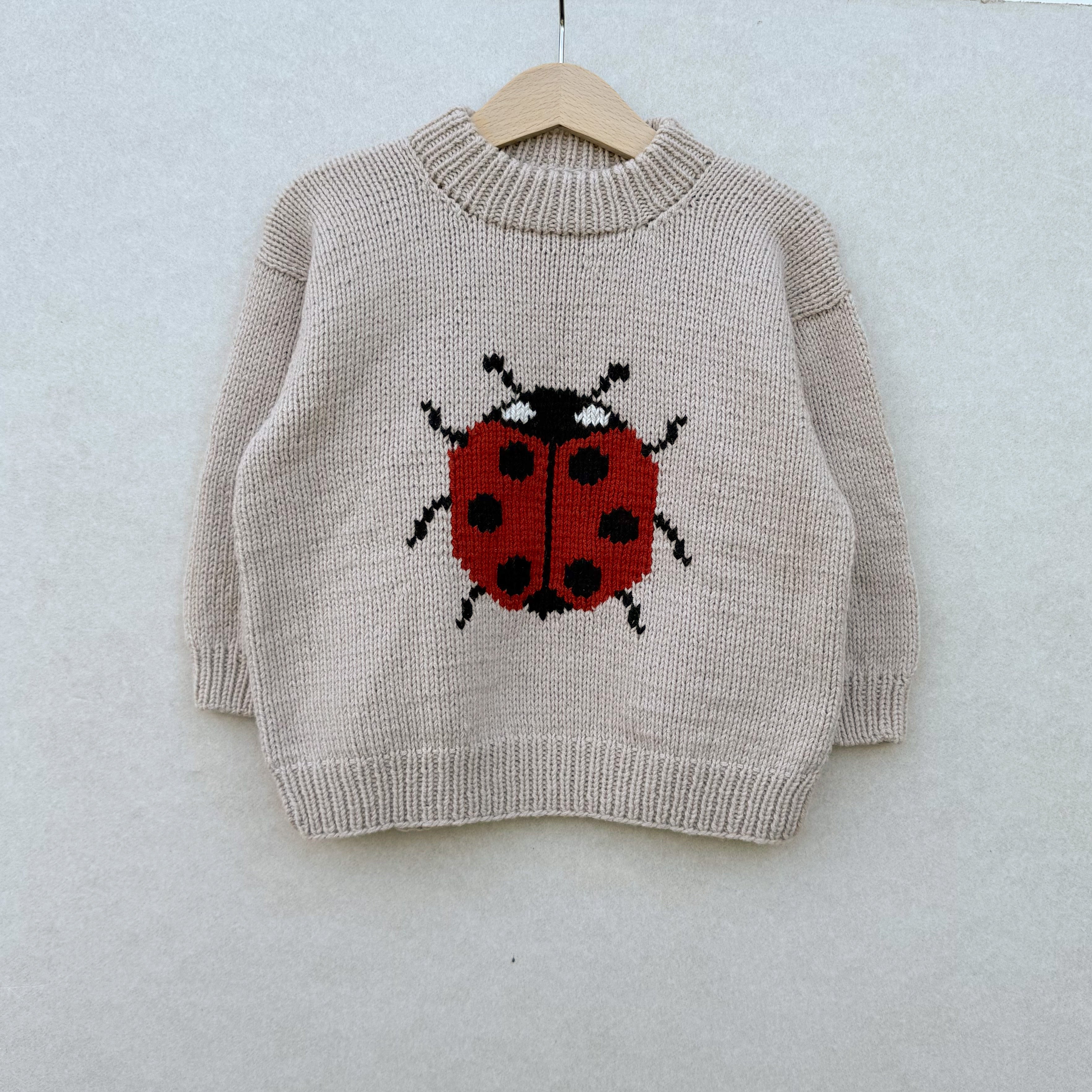 Le Ladybug Sweater est un pull simple et basique qui présente un joli motif de coccinelle sur le devant. Le corps est travaillé dans les deux sens, tandis que les manches sont travaillées en rond. Le devant est travaillé de bas en haut et le dos de haut en bas. Le Ladybug Sweater est tricoté avec 2 brins de mérinos maintenus ensemble.