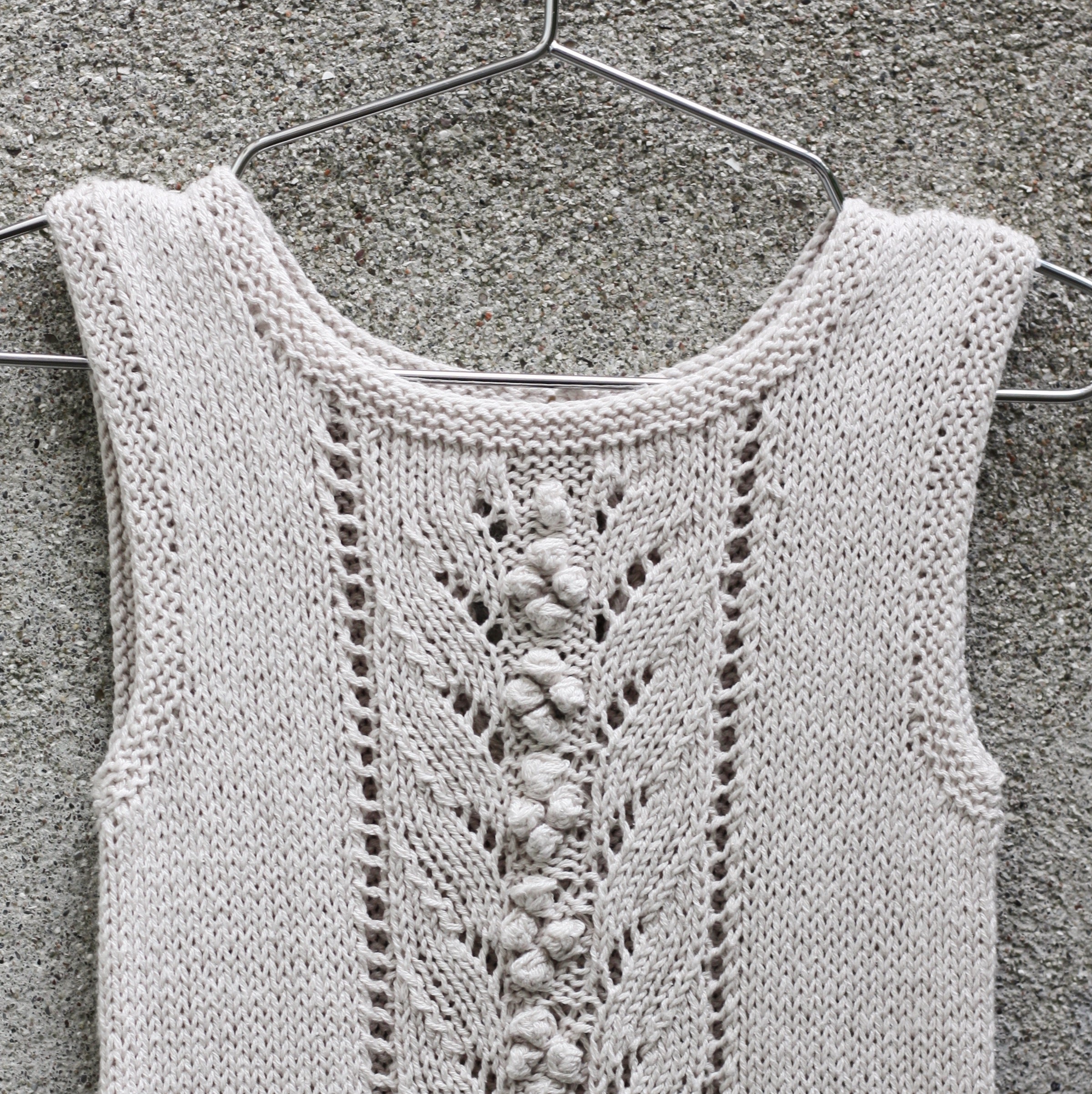 Garn: Knitting for Olive Merino, Cotton Merino eller Pure Silk (250 m [273 yd] / 50 g [1,8 oz]), fingertykt garn, 1 (2, 2, 3) nøster. Prøven er i Pure Silk i fargen Putty.