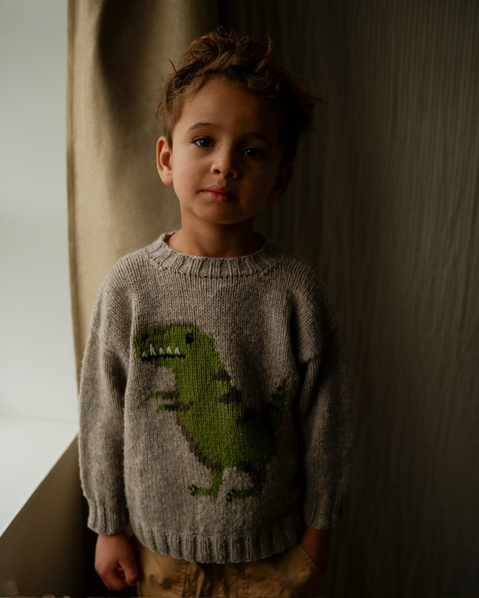 Dinosaur Sweater er en enkel og enkel basisgenser med dinosaurmotiv på forsiden. Kroppen strikkes frem og tilbake, mens ermene strikkes rundt. Forstykket strikkes nedenfra og opp, mens ryggen strikkes ovenfra og ned. Dinosaur Sweater er strikket med 1 tråd Heavy Merino.