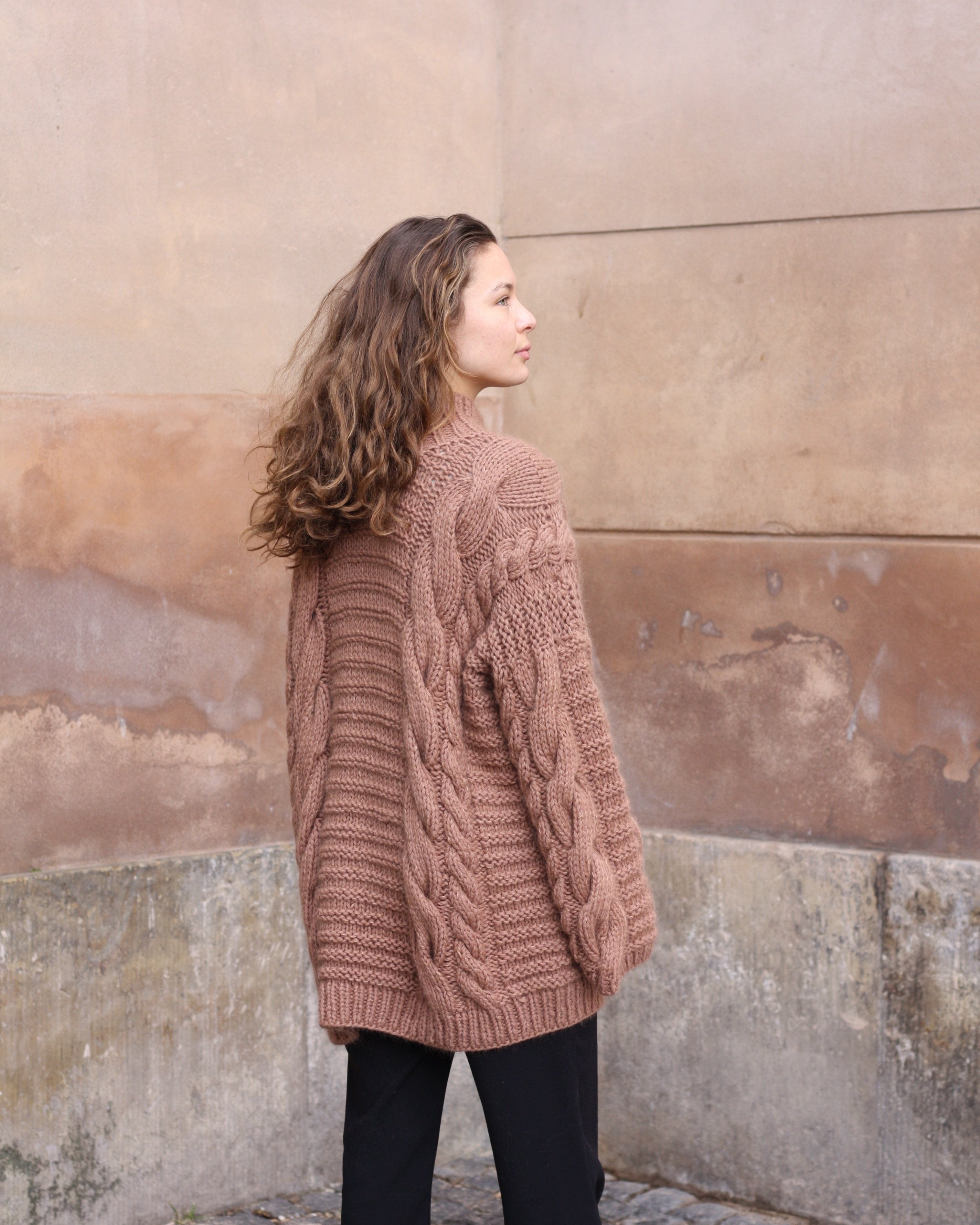 Knitted Streets of Copenhagen er en oversized genser inspirert av det gamle Københavns trange og svingete gater. Denne store og tykke genseren viser både kurver og rette linjer, og den er både uformell og sofistikert på samme tid - akkurat som København er for oss. Genseren er veldig oversized med ekstra lange ermer, men ermene kan enkelt gjøres kortere hvis du foretrekker det.