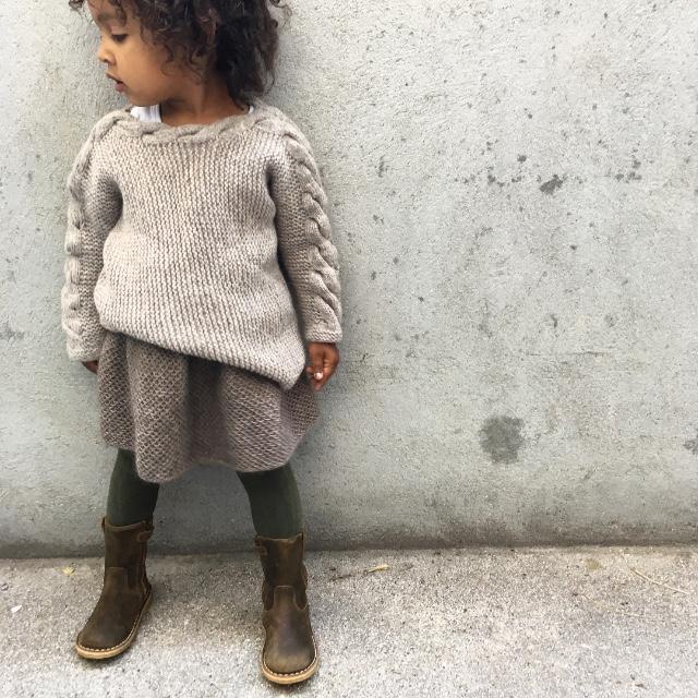 Garn: 2 tråder sammen: 1 tråd av Knitting for Olive Merino eller Pure Silk (250 m [273 yd] per 50 gr [1,8 oz]), fingertykt garn; 1 (2, 2, 2, 3, 3, 3, 4) nøster; + 1 tråd av Knitting Knitting for Olive Soft Silk Mohair (70 % mohair, 30 % silke; 225 m per 25 g) blondegarn; 2 (2, 2, 2, 3, 3, 3, 4) nøster Prøven er i størrelse 2 år, i Knitting Knitting for Olive Pure SilkCardamom ; + Knitting for Olive for Knitting for Olive Soft Silk Mohair, Dusty Moose-fargen