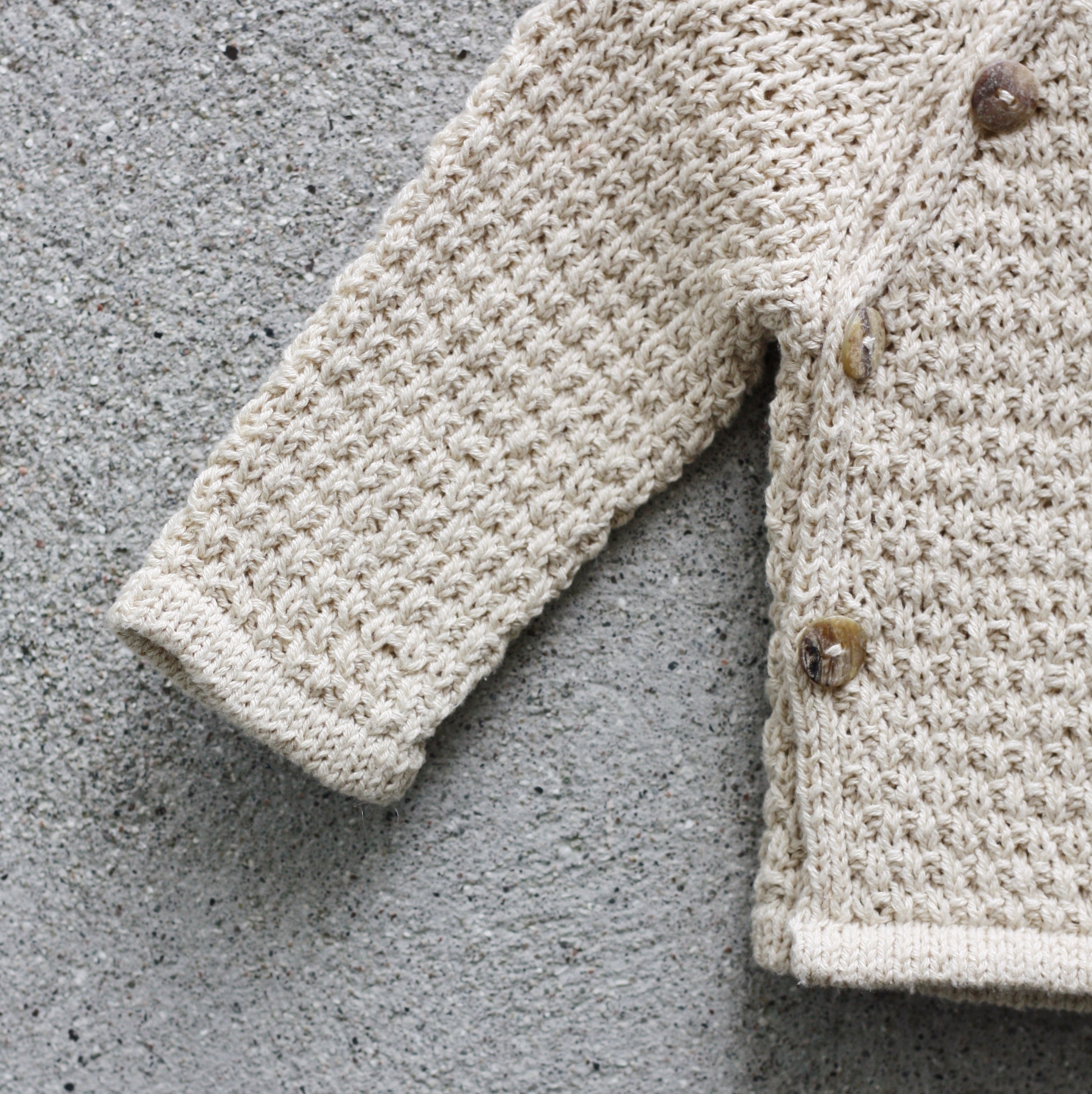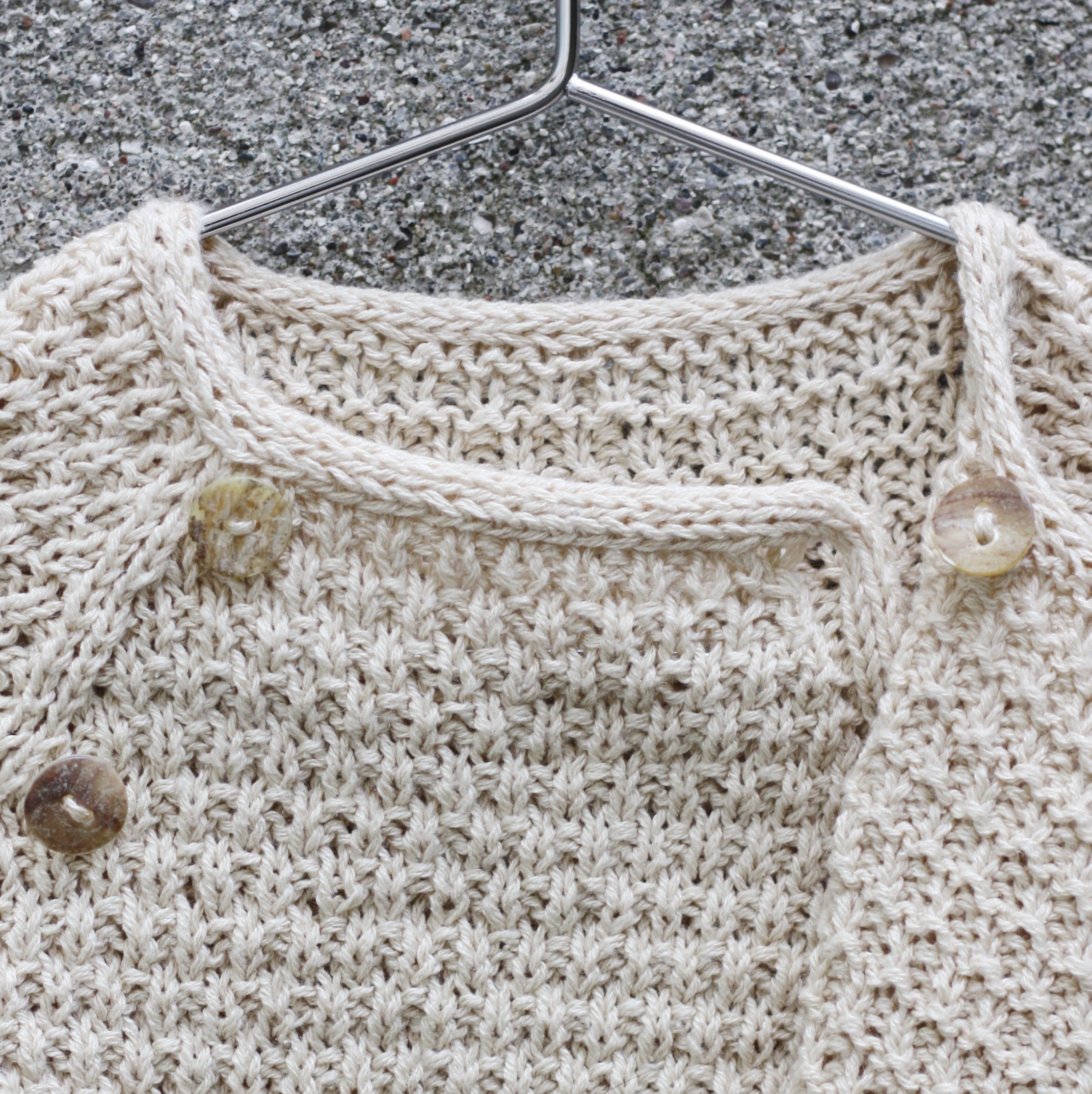 Oat Wrap er en liten strukturert slå-om-bluse med knapper og kanter i glattstrikk. Den strikkes nedenfra og opp med enten 1 tråd Merino, Cotton Merino eller Pure Silk. Ermene strikkes rundt, mens kroppen strikkes i ett stykke frem og tilbake med knapphull opp til armhulene. Deretter strikkes kropp og ermer sammen på en pinne, og blusen formes med raglanfellinger samtidig som det strikkes flere knapphull. Halskanten avsluttes med en I-snørekant, mens du har mulighet til å strikke eller sy kantene på kropp og ermer ned.