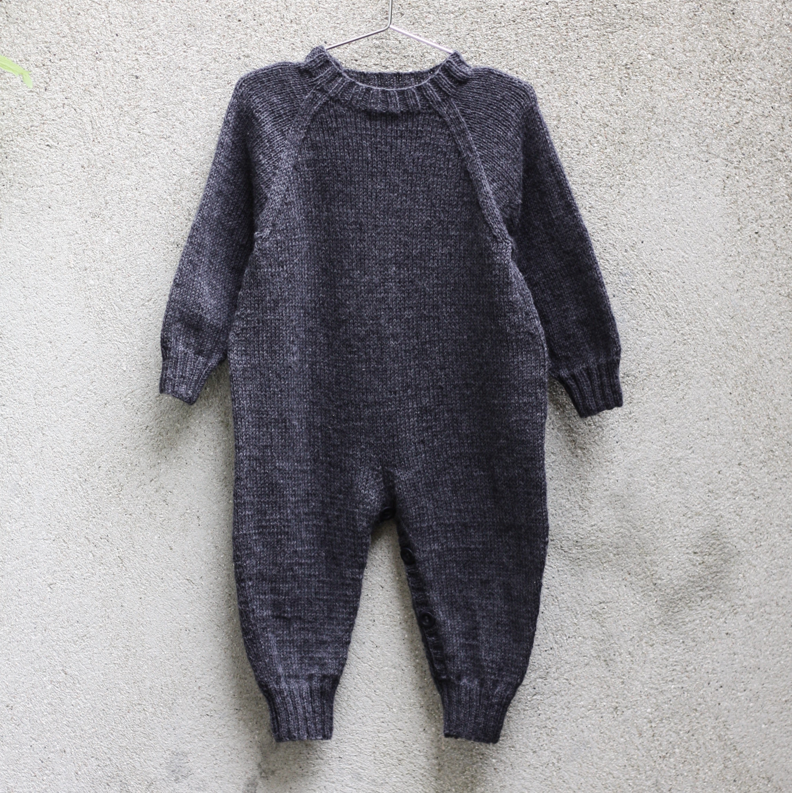 Robin Suit er en enkel og praktisk løstsittende alt-i-ett-drakt til babyer og små barn. Den strikkes nedenfra og opp med 1 tråd Merino, Cotton Merino eller Pure Silk. Dressen har en raglankonstruksjon, en splitt i nakken langs en av raglansømmene som lukkes med knapper, og en annen åpning på innsiden av bena som også lukkes med knapper for å gjøre bleieskift enklere.