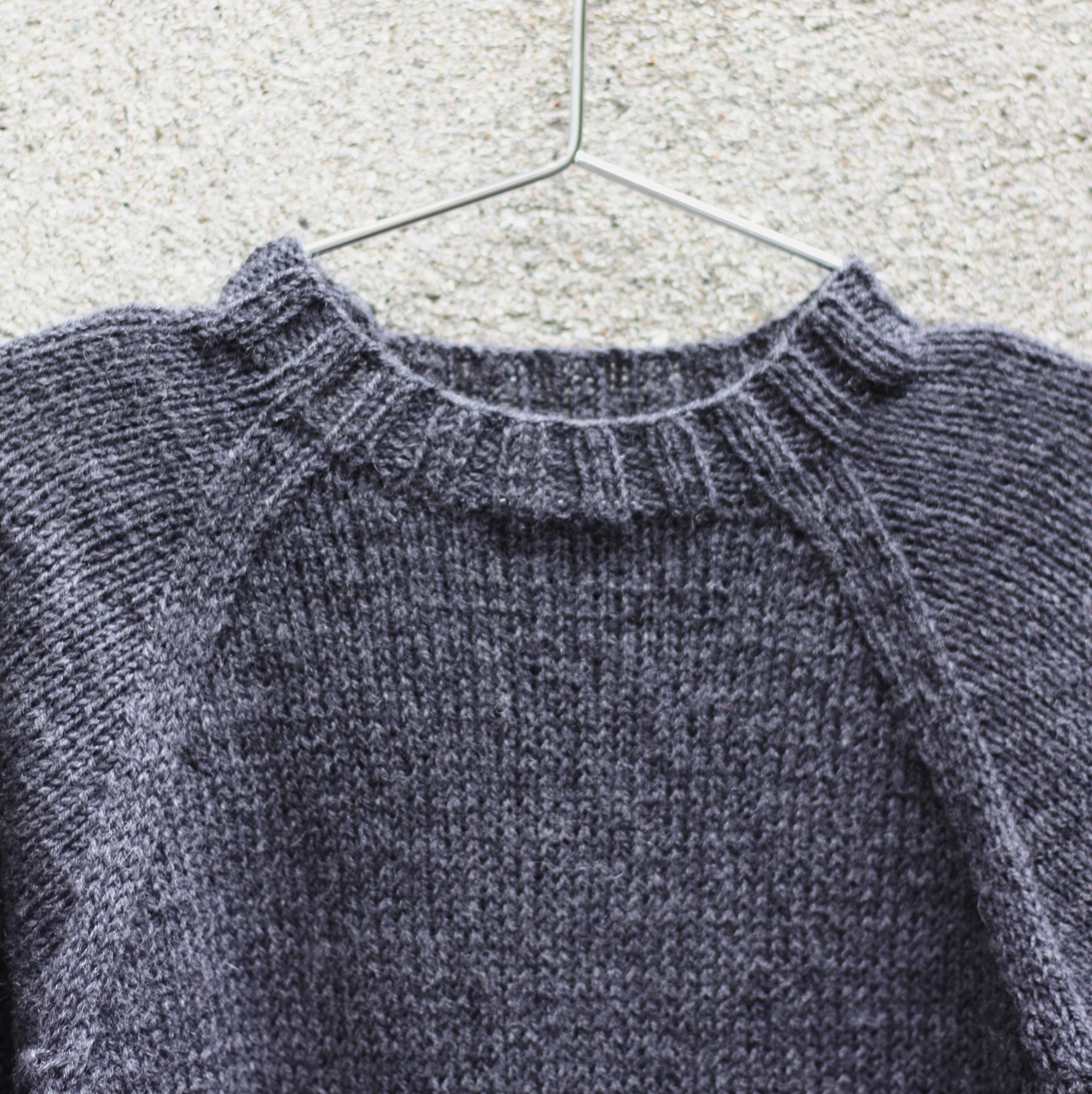 Garn: Knitting for Olive Merino, Cotton Merino eller Pure Silk (250 m [273 yd] / 50 g [1,8 oz]), fingertykt garn, 3 (3, 4, 5) nøster. Prøven er i Merino i fargen Thunder Cloud