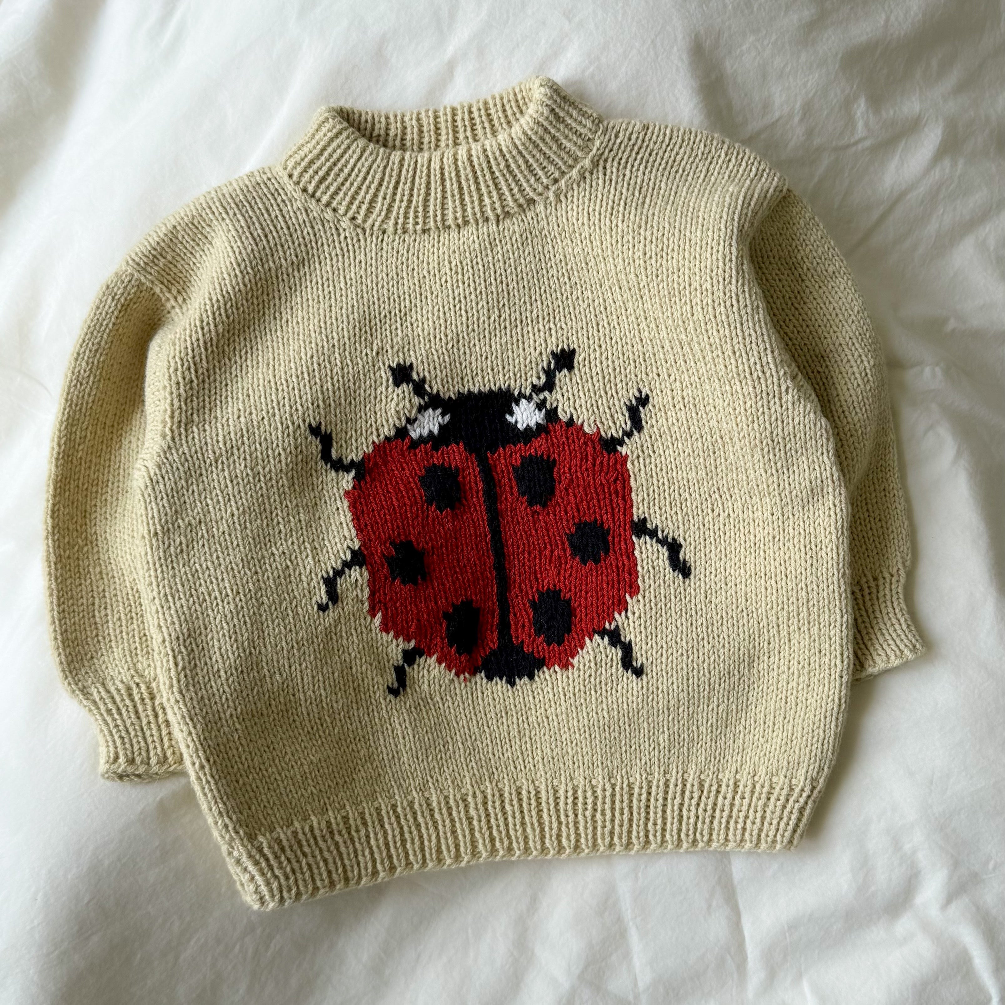 Ladybug Sweater er en enkel og enkel basisgenser med et søtt marihøne-design på forsiden. Kroppen strikkes frem og tilbake, mens ermene strikkes rundt. Forstykket strikkes nedenfra og opp, mens ryggen strikkes ovenfra og ned. Ladybug Sweater er strikket med 2 tråder merino som holdes sammen hele veien.