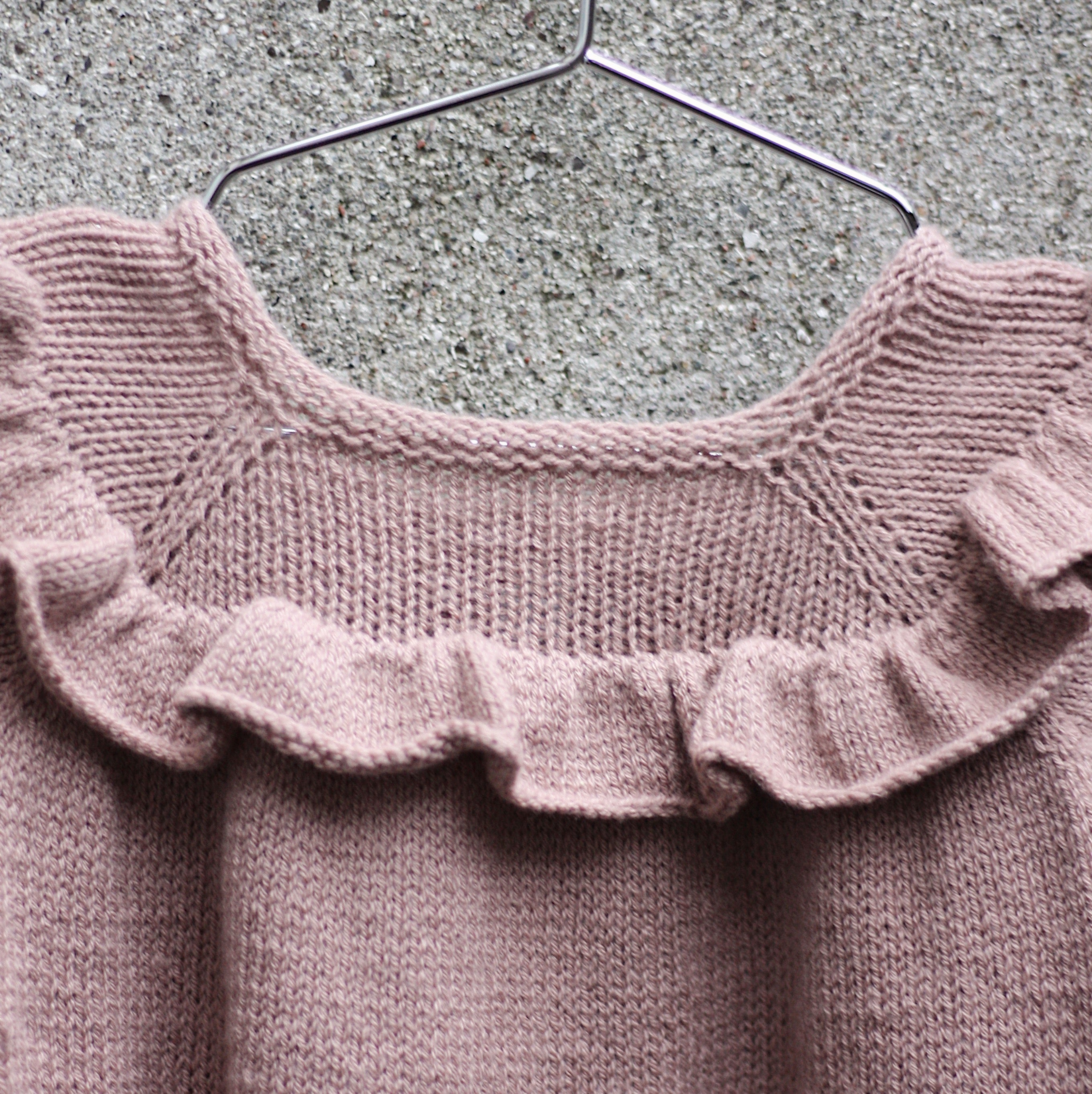 Het eerste deel van het juk wordt heen en weer gebreid om de sleutelgatopening in de nek te creëren. Daarna wordt het lijf in tricotsteek rondgebreid tot aan het kruis, waarbij het voor- en achterkruis apart heen en weer worden gebreid. De optionele mouwen worden rondgebreid van boven naar beneden. Steken worden rond het juk opgepakt voor de ruche en de ruche wordt vervolgens rondgebreid. De mouwlengte kan eenvoudig worden aangepast.