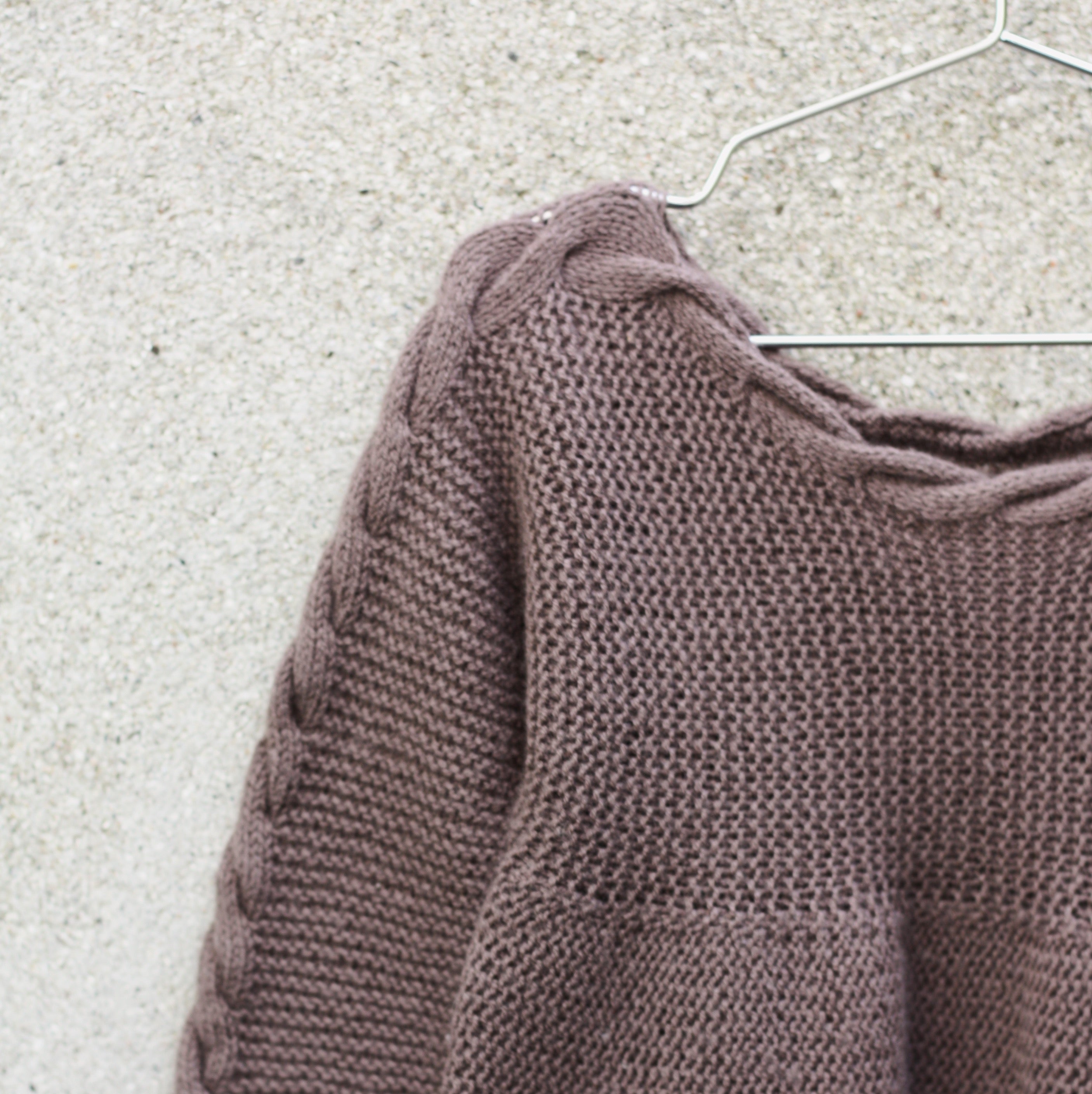 Garen: Knitting for Olive Merino of Pure Silk (250 m [273 yd] / 50 g [1.8 oz]), vingergewicht garen, 3 (3, 4) // 4 (5, 6, 8) bollen. Voorbeeld is in Merino in de kleur Plum Clay