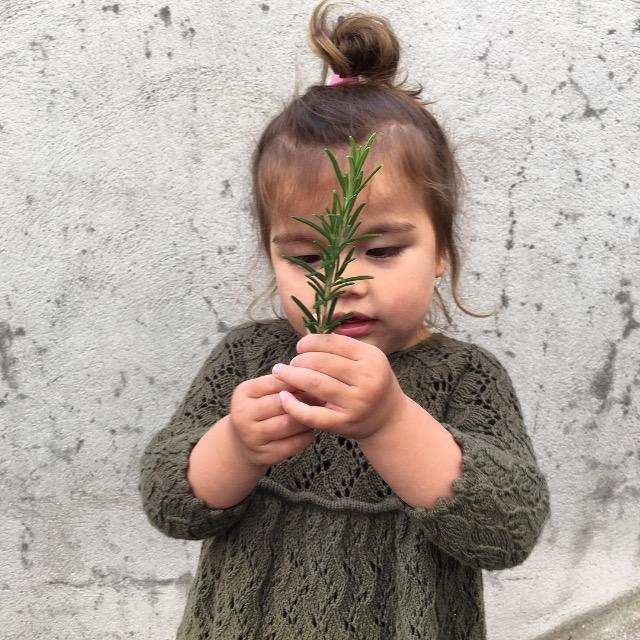 Met een allover stekenpatroon van kleine hulsttakken die zachtjes als golven langs de jurk kabbelen vanaf de zoom tot aan de kraag, een plooi met hoge taille die een volle, eigenzinnige rok vormt, zomen die zijn afgezet met kleine pomponachtige bobbels en mouwen van 3⁄4 lengte, tovert onze Holly Dress met een combinatie van elegant ontwerp, textuurdetails en inspiratie uit de natuur. Het ontwerp is onderaan en in de ronde gewerkt tot aan de opening op de rug, vastgezet met een gehaakte lus. Het evenwicht tussen het gemak van uitvoering en de leuke uitdaging van kantbreien.
