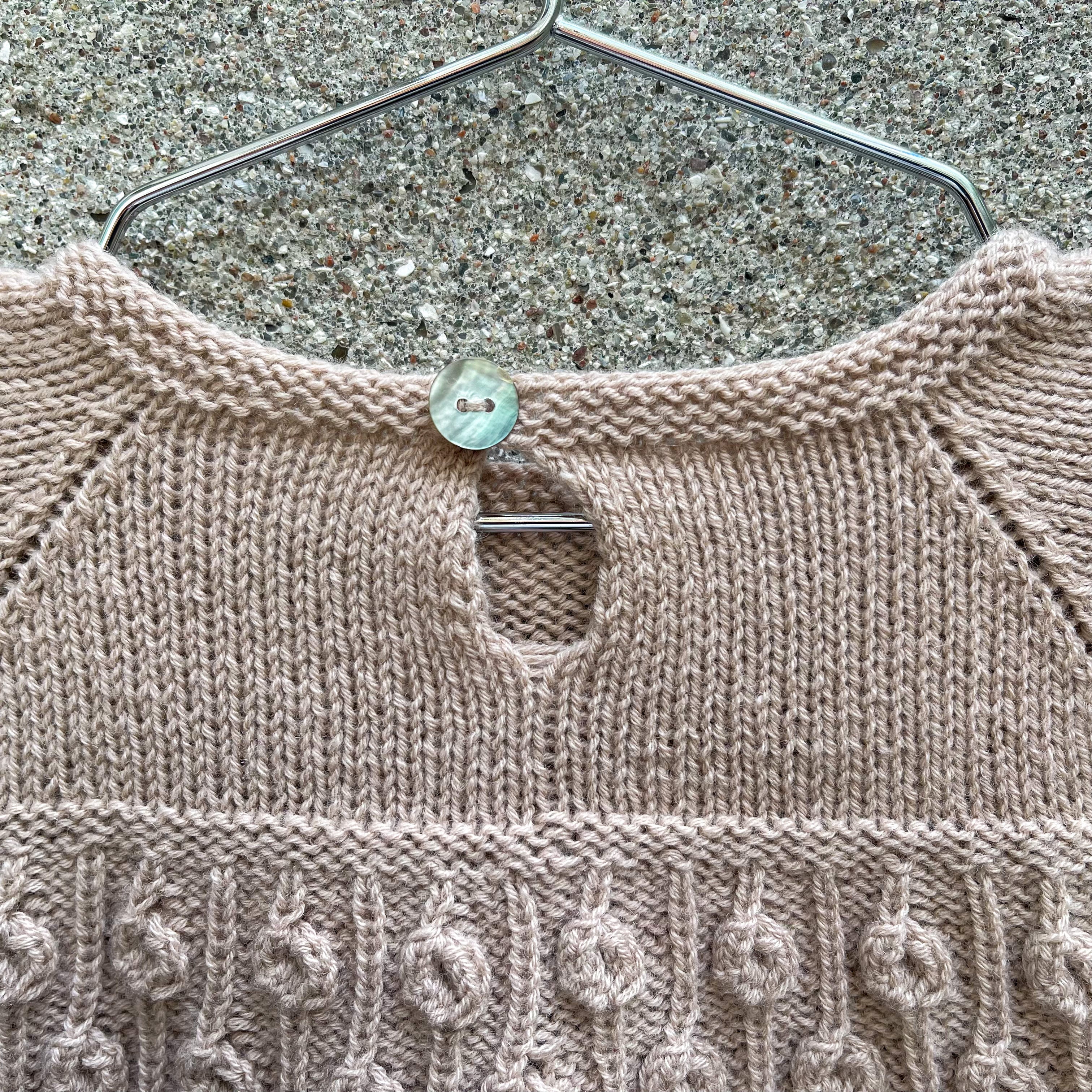 Man börjar med att sticka fram- och bakstjärt var för sig fram och tillbaka innan arbetet sammanfogas och fortsätter runt upp till underarmarna. Ärmarna stickas sedan i slätstickning runt nerifrån och upp och sammanfogas med kroppen. Därefter formas oket med raglanminskningar. Den övre delen av oket stickas i slätstickning med en liten nyckelhålsöppning baktill.