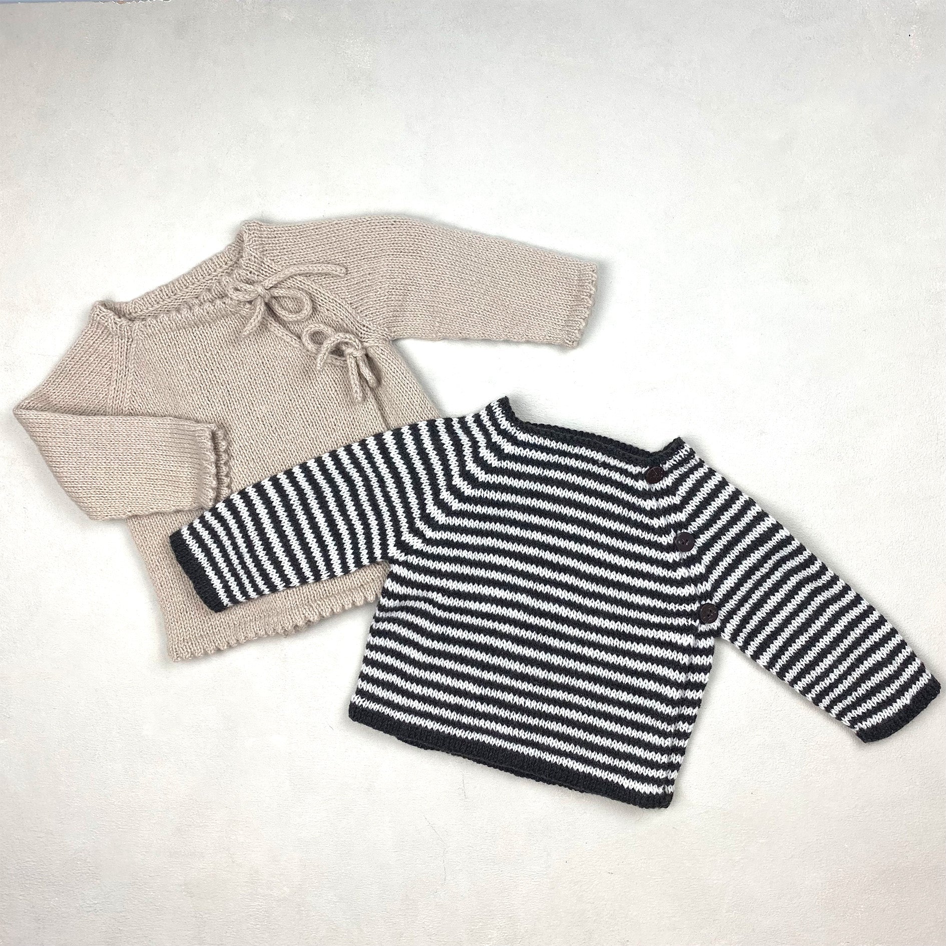 Proverna är stickade i Merino - Sand och Merino - Brown Bear och Cream