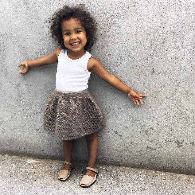 Mullet Skirt är en enkel design med lite formgivning men en rik, intressant textur som kommer både från slip stitch-mönstret och användningen av två trådar garn - en av de rekommenderade garnerna och en fluffig mohair- och silkesblandning. Resultatet är en ren njutning att sticka och en fröjd för alla små flickor - från 1 till 10 år - att bära och snurra runt i. Den stickas runt nerifrån och upp och har ett foder för resår i midjan. Du kommer också att ha roligt när du väljer din egen färgkombination, antingen ton i ton eller kontrasterande, från vårt urval av garner.